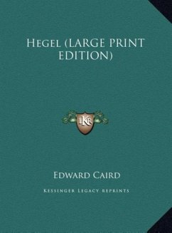 (LARGE PRINT EDITION) 1883. A study of Georg Wilhelm Friedrich Hegel, the philosopher who belongs to the period of German idealism in the decades following Kant. As a theology student Hegel formed friendships fellow students, the future great romantic poet Friedrich Holderlin and Friedrich W. J. von Schelling, who, like Hegel, would become one of the major figures of the German philosophical scene in the first half of the nineteenth century. These friendships clearly had a major influence on Hegel's philosophical development, and for a while the intellectual lives of the three were closely intertwined. The most systematic of the post-Kantian idealists, Hegel attempted, throughout his published writings as well as in his lectures, to elaborate a comprehensive and systematic ontology from a logical starting point.