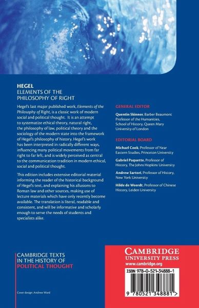 A translation of Hegel's classic work of modern social and political thought, Elements of the Philosophy of Right.