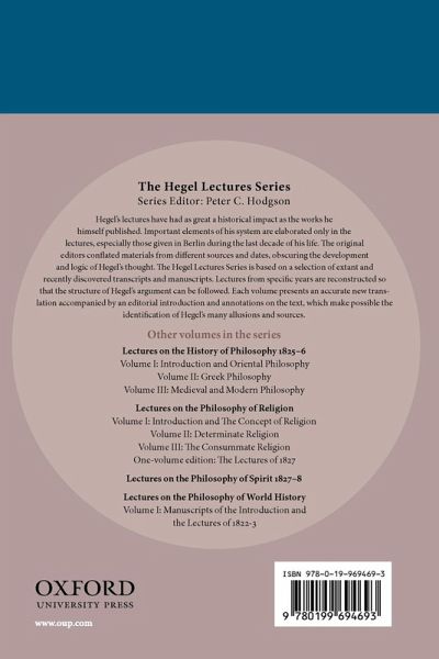 Peter C. Hodgson presents a new translation of Hegel's 1829 lectures on the proofs of the existence of God, based on the definitive German edition. These lectures give us the great philosopher's final and most seasoned thinking on a topic of obvious significance to him, that of the reality status of God and ways of knowing God.