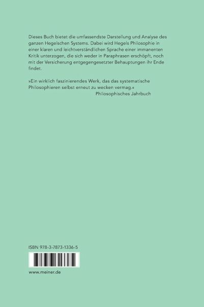 Dieses Buch bietet die umfassende neuere Darstellung und Analyse des ganzen Hegelschen Systems. Dabei wird Hegels Philosophie in einer klaren und leichtverständlichen Sprache einer immanenten Kritik unterzogen, die sich weder in Paraphrasen erschöpft noch mit der Versicherung entgegengesetzter Behauptung ihr Ende findet. "Ein wirklich faszinierendes Werk, das das systematische Philosophieren selbst erneut zu wecken vermag¿ Philosophisches Jahrbuch