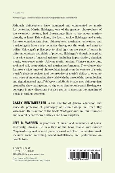 Casey Rentmeester is the director of general education and associate professor of philosophy at Bellin College in Green Bay, Wisconsin, USA. He is author of the book Heidegger and the Environment. Jeff R. Warren is professor of music and humanities at Quest University Canada. He is author of the book, Music and Ethical Responsibility and several peer-reviewed articles. His creative work includes sound recording, sound installations, and performance on double bass.