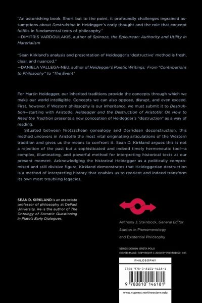 A bold new conception of Heidegger's project of Destruktion as a method of interpreting history For Martin Heidegger, our inherited traditions provide the concepts through which we make our world intelligible. Concepts we can also oppose, disrupt, and even exceed. First, however, if Western philosophy is our inheritance, we must submit it to Destruktion-starting with Aristotle. Heidegger and the Destruction of Aristotle: On How to Read the Tradition presents a new conception of Heidegger's "destruction" as a way of reading. Situated between Nietzschean genealogy and Derridean deconstruction, this method uncovers in Aristotle the most vital originating articulations of the Western tradition and gives us the means to confront it. Sean D. Kirkland argues this is not a rejection of the past but a sophisticated and indeed timely hermeneutic tool-a complex, illuminating, and powerful method for interpreting historical texts at our present moment. Acknowledging the historical Heidegger as a politically compromised and still divisive figure, Kirkland demonstrates that Heideggerian destruction is a method of interpreting history that enables us to reorient and indeed transform its own most troubling legacies.