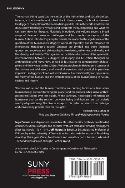 The human being stands at the center of the humanities and social sciences. In an age that some have dubbed the Anthropocene, this book addresses Heidegger's conception of the human being and its role in the world. Contributors discuss how Heidegger envisages and interprets the human being and what we can learn from his thought. Pluralistic in outlook, this volume covers a broad range of divergent views on Heidegger and his complex conception of the human. A short introductory chapter orients the reader to the significance of the question of the human in Heidegger's works, its topicality, and its relevance for interpreting Heidegger's oeuvre. Chapters are divided into three thematic groups: anthropology and philosophy; human being, otherness, and world; and life, identity, and finitude. This organization facilitates discussions of the systematic interconnection between Heidegger's philosophy and his critical thoughts on anthropology and humanism, as well as his relation to contemporary philosophers and their views on the subject. Various problems in Heidegger's concept of the human are addressed, and moral dimensions and practical imperatives implicit in Heidegger explored in discussions about intersectionality and oppression, the frailty of the human, and the embeddedness of the human being in nature, society, and history.