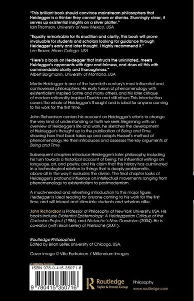 "Equally remarkable for its erudition and clarity, this book will prove invaluable for students and scholars looking for guidance through Heidegger's early and later thought. Richardson's discussion of Being and Time is particularly ingenious, showing how it progresses through the increasingly profound layers of pragmatism, existentialism, and temporality. I highly recommend it." - Lee Braver, Hiram College, USA