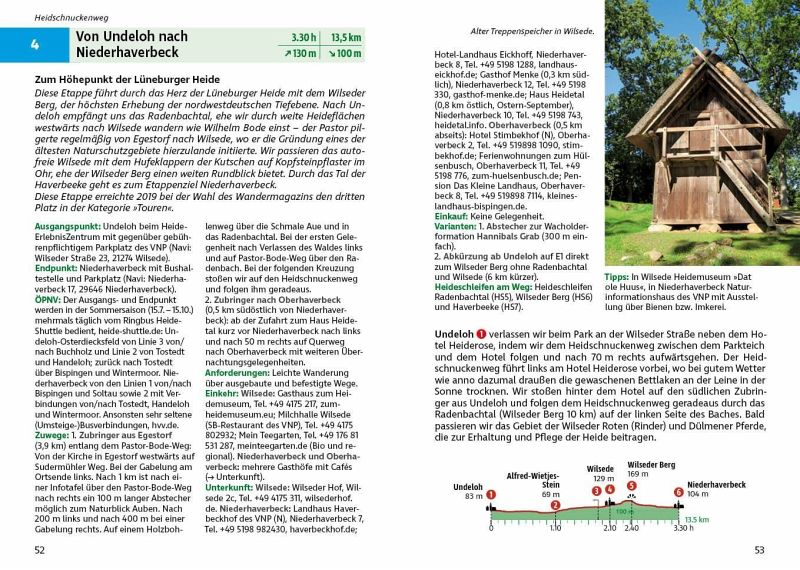 Der Rother Wanderführer »Heidschnuckenweg« stellt die zwölf Etappen sowie zwei Varianten des Weitwanderwegs umfassend vor. Außerdem beschreibt er die »Heideschleifen«, zwölf weitere Rundwanderungen entlang der Hauptroute. Mit diesen Extratouren lässt sich der Fernwanderweg bestens erweitern oder aber man erwandert sie als genussvolle Tagestouren.