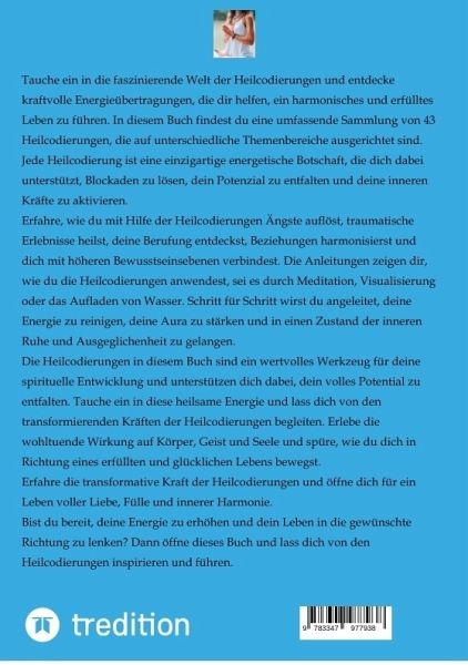 Die Heilcodierungen in diesem Buch sind ein wertvolles Werkzeug für deine spirituelle Entwicklung und unterstützen dich dabei, dein volles Potential zu entfalten. Tauche ein in diese heilsame Energie und lass dich von den transformierenden Kräften der Heilcodierungen begleiten. Erlebe die wohltuende Wirkung auf Körper, Geist und Seele und spüre, wie du dich in Richtung eines erfüllten und glücklichen Lebens bewegst.