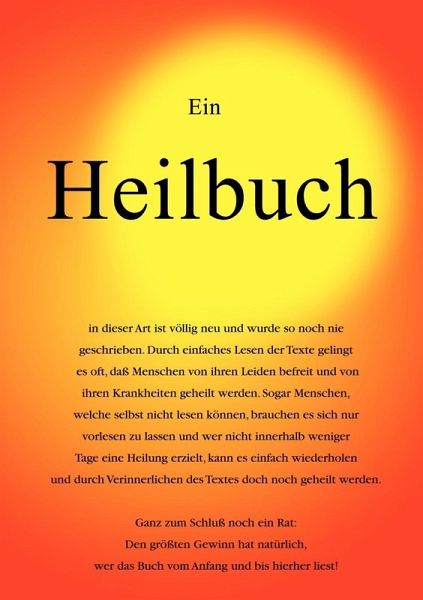 Der Titel sagt den Inhalt aus, denn durch einfaches lesen können eine Reihe von Erkrankungen innerhalb weniger Tage verschwinden, sogar bei Menschen die nicht daran "glauben". Wer es vom Anfang bis zum Ende liest und es gegebenenfalls wiederholt und rekapituliert, wird in jedem Fall etwas davon haben.