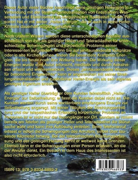 Wir wissen es längst - moderne Technik in Form von Handys und Computer strahlt mehr als unsere altmodisch-natürlichen Körper vertragen können. Kopfschmerzen und Schlimmeres sind Symptome für die Überforderung unserer Organismen durch Elektrosmog und Funkstrahlung. Zudem be-(erd-)strahlt uns auch noch unser Planet durch unterirdisch verlaufende Wasseradern und Gitternetze, die verantwortlich für Schlafstörungen oder Rheumabeschwerden sind. In der Behandlung der körperlichen Symptome geht Helmut Geppert, Energie-Heiler mit besonderer Gabe und Autor zahlreicher Fachbücher zum Thema Geistheilung und Telepathie, ganz eigene und faszinierende Wege. In "Heiler-Energie" (BoD Norderstedt) stellt er spannende und anschaulich dar, wie gesundheitliche Probleme sich ausschließlich durch Gedankenkraft und kosmische Energie lösen lassen. Gesundheitsministerin aufgemerkt: So werden sparsame Heilmethoden, Respekt vor dem Patienten und ein ganzheitliches Menschenbild in ein stimmiges Konzept alternativer Heilpraxis gepackt!Oft sind es einschneidende Wendepunkte oder schwere Erkrankungen, die Menschen auf den Pfad ihres wirklichen Lebenssinnes bringen. So war es auch bei Helmut Geppert, der bei philippinischen Heilern auf die Fährte seiner besonderen Begabung zur Hellsichtig- und Hellfühligkeit gelenkt wurde. Als Wünschelrutengänger und Teleradiästhet hat er sich mittlerweile einen Namen gemacht und erringt bedeutende Heilerfolge, wenn er körperliche Erkrankungen wahrnimmt, in einen Zusammenhang mit Strahlungen setzt und durch Energiearbeit behandelt. Er ist einfühlsamer Gedankenheiler und besitzt die wunderbare Kraft zur Strahlungsneutralisation, indem er Kristalle energetisch auflädt. Die in diesem inspirierenden Buch zusammengefassten detailreichen Schilderungen der Fähigkeiten und Arbeitsweisen veranschaulichen überzeugend die heilende Arbeit des Autors. Informativ und kompetent führt er in die Terminologie seines Fachgebietes ein. Mit gehöriger Distanz zur Esoterik schildert er eigene Erlebnisse bei seiner Arbeit und macht auf deren spirituell-göttliche Aspekte aufmerksam, ohne missionierend zu wirken. Eine geistig stimulierende China-Reise wird durch wunderbare Erzählungen und farbenprächtige Fotos illustriert.Dieser alltagsnahe Ratgeber macht aufmerksam auf das, was nur mit dem dritten Auge sichtbar ist und ist eine lohnenswerte Lektüre für die, denen diverse Strahlungen ganz schön auf den Astralleib gehen!Books on Demand, Norderstedt 2007