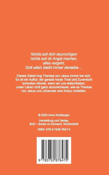 Woher komme ich? Wohin gehe ich? Was soll ich tun?Diese Fragen müssen im Lärm und Stress des modernen Lebens einfach untergehen. Sollten diese Fragen in Krisensituation manchmal auftauchen, so kann man sehr leicht ausweichen, weil der Zeitgeist diese Fragen durch weitere und feiner gesponnenene Ablenkung immer mehr erstickt.Demgegenüber gibt es aber Lebensentwürfe, die in ihrer Radikalität gerade Menschen unserer Zeit locken und faszinieren könnten. Im vorliegenden Buch werden zwei Menschen aus dem 16. Jh. vorgestellt, die unser zukünftiges Leben bei Gott gleichsam "vorauslebten". Die Frage nach dem Sinn unseres Lebens wird von beiden einfach und klar beantwortet: Es ist das Leben bei und mit Gott, das unserem Leben Sicherheit und Halt gibt, und zwar schon hier und jetzt und nicht erst im zukünftigen Leben.Beide haben durch ihre Schriften und das Beispiel ihres Lebens einen faszinierenden Weg aufgezeigt, dem auch moderne Menschen folgen könnten, um ihrer Sehnsucht nach einer spürbaren Gottesbeziehung nachzukommen.
