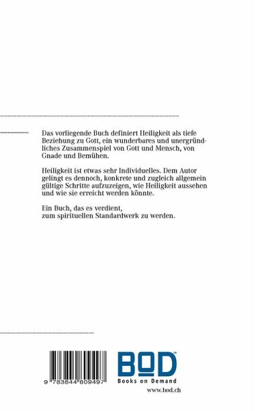 Das vorliegende Buch definiert Heiligkeit als tiefe Beziehung zu Gott, ein wunderbares und unergründliches Zusammenspiel von Gott und Mensch, von Gnade und Bemühen.Heiligkeit ist etwas sehr Individuelles. Dem Autor gelingt es dennoch, konkrete und zugleich allgemein gültige Schritte aufzuzeigen, wie Heiligkeit aussehen und wie sie erreicht werden könnte.Ein Buch, das es verdient, zum spirituellen Standardwerk zu werden.