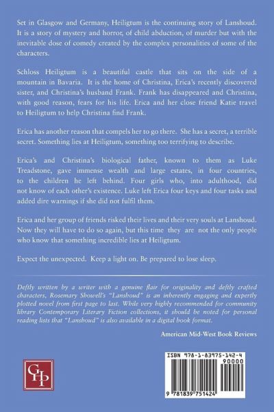 Heiligtum sits on the side of a mountain. It's the home of Erica Cameron's sister Christina, and her husband Frank. Frank has disappeared. Christina, with good reason, fears for his life. Erica travels to Heiligtum to help find him. Erica has another reason to go there. She has a terrible secret. Erica and her friends risked their lives and their very souls because of what was hidden at Lanshoud. Now they will have to do so again, only now they are not the only people who know that something incredible lies at Heiligtum. Expect the unexpected.
