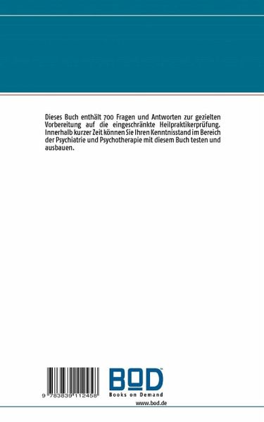 Dieses Buch enthält eine Sammlung von 700 Fragen und Antworten zu allen Themen der eingeschränkten Heilpraktikerprüfung. Überprüfen Sie Ihr Fachwissen aus den Bereichen der Psychiatrie und Psychotherapie und schließen Sie Wissenslücken noch rechtzeitig vor der Prüfung beim Amtsarzt.