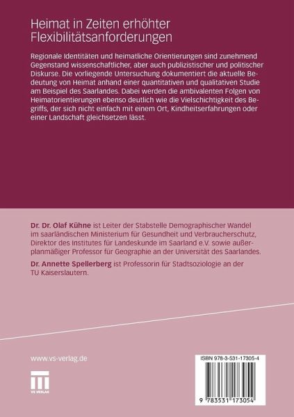 Regionale Identitäten und heimatliche Orientierungen sind zunehmend Gegenstand wissenschaftlicher, aber auch publizistischer und politischer Diskurse. Die vorliegende Untersuchung dokumentiert die aktuelle Bedeutung von Heimat anhand einer quantitativen und qualitativen Studie am Beispiel des Saarlandes. Dabei werden die ambivalenten Folgen von Heimatorientierungen ebenso deutlich wie die Vielschichtigkeit des Begriffs, der sich nicht einfach mit einem Ort, Kindheitserfahrungen oder einer Landschaft gleichsetzen lässt.