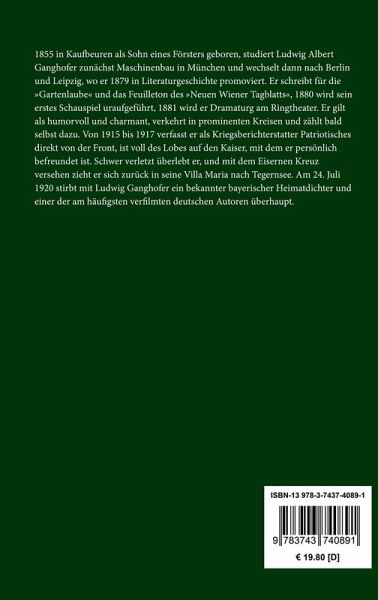 Ludwig Ganghofer: Heimkehr. GedichteErstdruck: »Heimkehr. Neue Gedichte«, Stuttgart, Bonz, 1883.Neuausgabe, herausgegeben von Karl-Maria Guth, Berlin 2023.Der Text dieser Ausgabe wurde behutsam an die neue deutsche Rechtschreibung angepasst.Umschlagabbildung: Hugo Kauffmann, Ländliches Paar, 1906Gesetzt aus der Minion Pro, 11 pt.Die Sammlung Hofenberg erscheint im Verlag Henricus - Edition Deutsche Klassik GmbH, BerlinÜber den Autor:1855 in Kaufbeuren als Sohn eines Försters geboren, studiert Ludwig Albert Ganghofer zunächst Maschinenbau in München und wechselt dann nach Berlin und Leipzig, wo er 1879 in Literaturgeschichte promoviert. Er schreibt für die »Gartenlaube« und das Feuilleton des »Neuen Wiener Tagblatts«, 1880 wird sein erstes Schauspiel uraufgeführt, 1881 wird er Dramaturg am Ringtheater. Er gilt als humorvoll und charmant, verkehrt in prominenten Kreisen und zählt bald selbst dazu. Von 1915 bis 1917 verfasst er als Kriegsberichterstatter Patriotisches direkt von derFront, ist voll des Lobes auf den Kaiser, mit dem er persönlich befreundet ist. Schwer verletzt überlebt er, und mit dem Eisernen Kreuz versehen zieht er sich zurück in seine Villa Maria nach Tegernsee. Am 24. Juli 1920 stirbt mit Ludwig Ganghofer ein bekannter bayerischer Heimatdichter und einer der am häufigsten verfilmten deutschen Autoren überhaupt.
