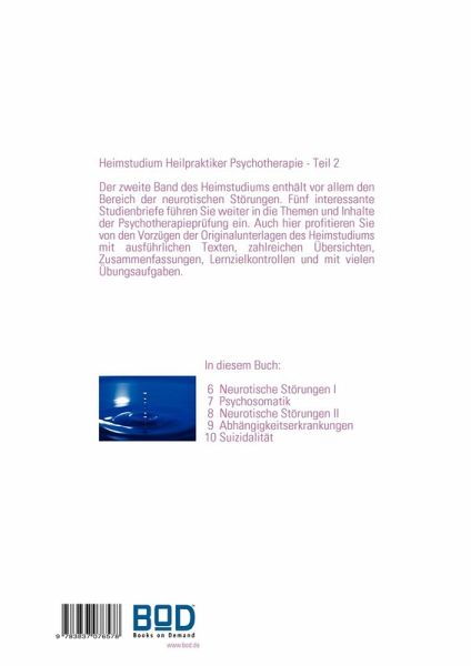 Endlich in Buchform verfügbar! Das Erfolgsfernstudium des Therapeuten und Fachbuchautor Ingo Michael Simon in drei Bänden. Das gesamte Fachwissen der eingeschränkten Heilpraktikerprüfung ist in diesem dreibändigen Buch in Maxiformat (DIN A4) enthalten. Lernen und arbeiten Sie mit den Originalunterlagen des Fernstudiums mit ausführlichen und leicht verständlichen Texten, formulierten Lernzielen, Zusammenfassungen, Grafiken und tabellarischen Übersichten. Der zweite Band enthält fünf Studienbriefe, die jeweils von Übungsaufgaben mit Musterlösungen ergänzt werden.Folgende Themen lernen Sie im zweiten Teil:Angststörungen, Zwangsstörungen, Belastungsreaktionen, Anpassungsstörungen, Posttraumatische Belastungsstörungen, somatoforme Störungen, dissoziative Störungen, Psychosomatik, Essstörungen, Schlafstörungen, sexuelle Störungen, Persönlichkeits- und Verhaltensstörungen, Abhängigkeitserkrankungen, Suizidalität u.v.m