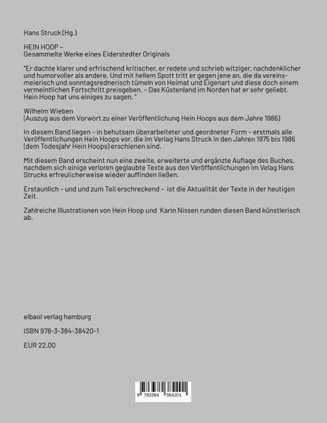In diesem Band liegen - in behutsam überarbeiteter und geordneter Form - erstmals alle Veröffentlichungen Hein Hoops vor, die in den Jahren 1975 bis 1986 (dem Todesjahr Hein Hoops) erschienen sind. Es handelt sich um Bücher, an denen der damalige Verleger Hans Struck auch heute noch die "urheberrechtlichen Verwertungsrechte" und Genehmigungen besitzt: mit hoch- und plattdeutschen Geschichten und Gedichten, "Vertelln" und "Riemels", aber auch mit Drucken und Skizzen des Künstlers.Erstaunlich - und zum Teil erschreckend - ist die Aktualität der Texte in der heutigen Zeit. Zudem zeichnen die Texte als Stück erlebter Zeitgeschichte ein lebendiges Porträt der damaligen Jahre.Aber auch das derzeit wachsende Interesse an Plattdeutsch und Veröffentlichungen in niederdeutscher Sprache machen die Geschichten und Gedichte über das Land- und Künstlerleben an der Nordseeküste und die kritischen Satiren "op Platt" zu einem auch heute noch äußerst lesenswerten literarischen Angebot.Mit diesem Band liegt nun eine zweite, erweiterte und ergänzte Auflage des Buches vor, nachdem sich einige verloren geglaubte Texte aus den Veröffentlichungen im Hans Struck Verlag erfreulicherweise wieder auffinden ließen. Zahlreiche Illustrationen von Hein Hoop und Karin Nissen runden diesen Band künstlerisch ab.