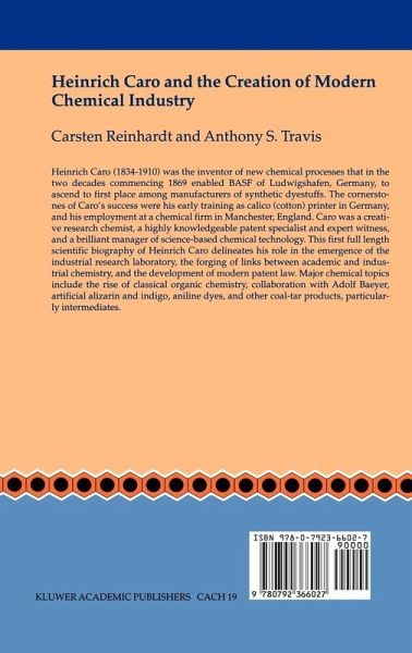 Heinrich Caro (1834-1910) was the inventor of new chemical processes that in the two decades commencing in 1869 enabled BASF of Ludwigshafen, Germany, to take first place among manufacturers of synthetic dyestuffs. The cornerstones of Caro's success were his early training as calico (cotton) printer in Germany, and his employment at a chemical firm in Manchester, England. Caro was a creative research chemist, a highly knowledgeable patent specialist and expert witness, and a brilliant manager of science-based chemical technology. This first full-length scientific biography of Heinrich Caro delineates his role in the emergence of the industrial research laboratory, the forging of links between academic and industrial chemistry, and the development of modern patent law. Major chemical topics include the rise of classical organic chemistry, collaboration with Adolf Baeyer, artificial alizarin and indigo, aniline dyes, and other coal-tar products, particularly intermediates.