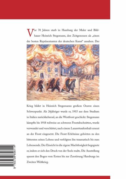 Dies ist der Katalog für die Ausstellung "Heinrich Stegemann 1888 - 1945: Bilder vom Krieg."Vor 70 Jahren starb in Hamburg der Maler und Bildhauer Heinrich Stegemann, den Zeitgenossen als "einen der besten Repräsentanten der deutschen Kunst" ansahen. Der Krieg bildet in seinem großen Oeuvre einen Schwerpunkt.Als 26jähriger wurde er, 1915 aus dem Studium in Italien zurückkehrend, an die Westfront geschickt. Stegemann kämpfte bis 1918 teilweise an schweren Frontabschnitten, wurde verwundet und verschüttet, nach einem Lazarettaufenthalt erneut an der Front eingesetzt. Die Front-Erlebnisse gehörten zu den bittersten seines Lebens und verfolgten ihn traumatisch bis zum Lebensende. Der Einsicht in die eigene Machtlosigkeit begegnete er, indem er sich den Druck von der Seele malte. Die Ausstellung spannt den Bogen vom Ersten bis zur Zerstörung Hamburgs im Zweiten Weltkrieg.