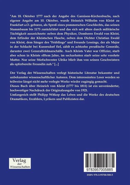 Dieses Buch über Heinrich von Kleist (1777 bis 1811) ist ein unveränderter, hochwertiger Nachdruck der Originalausgabe von 1921.