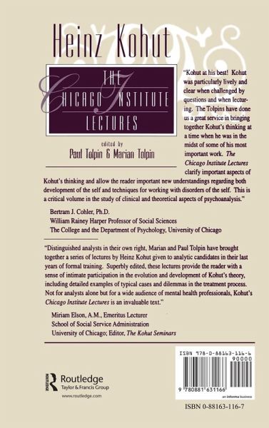 Delivered to advanced candidates at The Chicago Institute for Psychoanalysis in 1974-75, The Chicago Institute Lectures reveal a Kohut in transition, a Kohut wrestling with the creative tension in psychoanalysis between tradition and innovation, b
