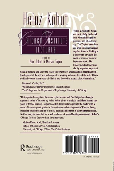 Delivered to advanced candidates at The Chicago Institute for Psychoanalysis in 1974-75, The Chicago Institute Lectures reveal a Kohut in transition, a Kohut wrestling with the creative tension in psychoanalysis between tradition and innovation, between continuity and change, even as he worked toward the psychology of the self "in the broad sense" that marked his decisive break from traditional psychoanalytic thought. Lightly edited by the Tolpins to preserve their authenticy, these lectures preserve the voice, the intellectual style, and the pedagogical bearing of a gifted creator in the very midst of creation. We find here a casual Kohut, thinking through in a relaxed and conversational way the assumptions that would become foundational to mature self psychology. The developmental trajectory of self-selfobject relationships, the role of selfobject failures in different types of psychopathology, the complex relationship between givens and the psychological environment in pathogenesis, the role of conflict in normal development and in psychopathology--these are among the recurrent themes taken up in these lectures. And there are, as well, Kohut's provocative asides on the child-rearing practices of his day, including the contrast between over- and understimulation, the impact of healthy parental sexuality on child development, and the difference between the normal oedipal phase of the self and the Oedipus complex. The clinical viewpoint of mature self psychology is anticipated in many ways, perhaps no more clearly than in Kohut's powerful reassessment of the perversions. The Chicago Institute Lectures are more than a key historical document in the evolution of psychoanalytic self psychology; they preserve the voice, the intellectual style, and the pedagogical bearing of a gifted creator in the very midst of creation.