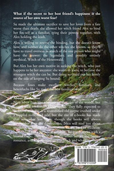What if the secret to her best friend's happiness is the source of her own worst fear? Su made the ultimate sacrifice to save her lover from a fate worse than death: she allowed her witch friend Alex to bind her fox-self as a familiar, tying their powers together, with Alex holding the leash. Alex is willing to reverse the binding, but she doesn't know how, and neither do the other witches she knows, so they'll have to travel overseas in search of the one person who might have the answer: the legendary, and possibly entirely mythical, Witch of the Hexenwald. But Alex has her own motive in seeking the witch, who just happens to be her ancestor: she wants to learn, to become the strongest witch she can be. But doing so could put her firmly on the side of keeping Su bound. Because foxes make excellent witches' familiars, and hexenfuchs like Su make the best familiars of all...