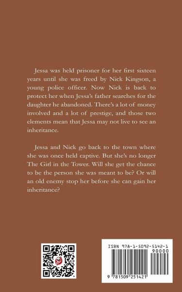 Jessa was held prisoner for her first sixteen years until she was freed by Nick Kingson, a young police officer. Now Nick is back to protect her when Jessa's father searches for the daughter he abandoned. There's a lot of money involved and a lot of prestige, and those two elements mean that Jessa may not live to see an inheritance. Jessa and Nick go back to the town where she was once held captive. But she's no longer The Girl in the Tower. Will she get the chance to be the person she was meant to be? Or will an old enemy stop her before she can gain her inheritance?