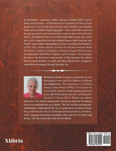 Six heirlooms - a portrait, a table, a parure, a whiskey label, a set of books, and a building -- tell the stories of six branches of a family whose possessions lived through three centuries and eventually came together under one roof before dispersing again. These items have survived through generations and witnessed their owners as they evolved through history. In addition to the lives of their individual owners, the stories also cover certain historical and cultural figures, both American and French: slave traders and plantation owners, merchants and financiers of New York, whiskey distillers, Creoles of Louisiana, wreckers off the Florida Keys, drafters on Napoleon's mission to Egypt, French lawyers and politicians, World War II fighters, and CIA spies. The book pays homage to the heirlooms' past owners; it also examines the culture that surrounds families of wealth and status and the fierce struggle to retain these advantages through marriage ties. The stories pay homage to the heirlooms' past owners.
