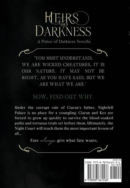 You must understand, we are wicked creatures, it is our nature. It may not be right, as you have said, but we are what we are." Now, Find out why. Under the corrupt rule of Ciaran's father, Nightfell Palace is no place for a youngling. Ciaran and Kes are forced to grow up quickly in order to survive the blood-soaked paths and tortuous trials set before them. Ultimately, the Night Court will teach them the most important lesson of all. Fate always gets what fate wants.