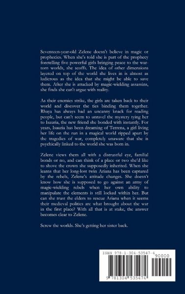 When seventeen year-old Zelene finds herself thrust into a world of magic and prophecy, she discovers fighting destiny might not be the toughest battle she has to face. Now she must join with three other girls, complete strangers linked only by blood relation, to fight a war they know nothing of and rescue the twin sister she's never met.