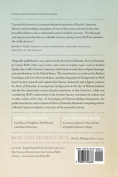 Originally published in 1900 and set in fin-de-si?cle California, Heirs of Yesterday by Emma Wolf (1865-1932) uses a love story to explore topics such as familial loyalty, the conflict between American individualism and ethno-religious heritage, and anti-Semitism in the United States. The introduction, co-authored by Barbara Cantalupo and Lori Harrison-Kahan, includes biographical background on Wolf based on new research and explores key literary, historical, and religious contexts for Heirs of Yesterday. It incorporates background on the rise of Reform Judaism and the late nineteenth-century Jewish community in San Francisco, while also considering Wolf's relationship to the broader literary movement of realism and to other writers of her time. As Cantalupo and Harrison-Kahan demonstrate, the publication history and reception of Heirs of Yesterday illuminate competing notions of Jewish American identity at the turn of the twentieth century. Compared to the familiar ghetto tales penned by Yiddish-speaking, Eastern European immigrant writers, Heirs of Yesterday offers a very different narrative about turn-of-the-twentieth-century Jewish life in the United States. The novel's central characters, physician Philip May and pianist Jean Willard, are not striving immigrants in the process of learning English and becoming American. Instead, they are native-born citizens who live in the middle-class community of San Francisco's Pacific Heights, where they interact socially and professionally with their gentile peers. Tailored for students, scholars, and readers of women's studies, Jewish studies, and American literature and history, this new edition of Heirs of Yesterday highlights the art, historical value, and controversial nature of Wolf's work.