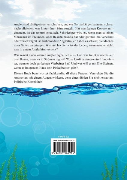 Angler sind häufig etwas verschroben und ein Normalbürger kann nur schwernachvollziehen, was hinter ihrer Stirn vorgeht. Hat man keinen Kontakt miteinander,ist das unproblematisch. Schwieriger wird es, wenn man so einenMenschen im Freundes- oder Bekanntenkreis hat oder gar mit ihm verwandtoder verschwägert ist. Insbesondere Anglerfrauen haben es schwer, die Mackenihres Gatten zu ertragen. Wie viel leichter wäre das Leben, wenn man versteht,was in einem Anglerhirn vorgeht?Was macht einen wahren Angler eigentlich aus? Und was treibt er nachts aufdem Rasen, wenn es in Strömen regnet? Wozu kauft er eimerweise Hundefutter,wenn er doch gar keinen Vierbeiner hat? Und was will er mit Klo-Steinen,wenn es im ganzen Haus kein Pinkelbecken gibt?Dieses Buch beantwortet fachkundig all diese Fragen. Verstehen Sie dieAntworten mit einem Augenzwinkern, denn eines dürfen Sie nicht erwarten:Politische Korrektheit!