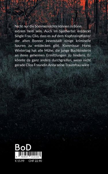 Nicht nur die Sommernächte können in Bonn extrem heiß sein. Auch im Spätherbst entdeckt Single Frau Clio, dass es auf dem Kopfsteinpflaster der alten Bonner Innenstadt einige kriminelle Spuren zu entdecken gibt. Kommissar Horst Wintertag hat alle Mühe, die junge Buchbinderin an ihren geheimen Ermittlungen zu hindern. Er könnte da ganz anders durchgreifen, wenn nicht gerade Clios Freundin Anna seine Traumfrau wäre.