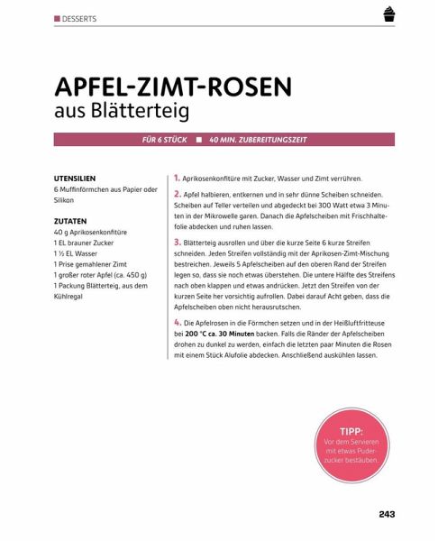 Das extradicke XXL-Heißluftfritteusen-Buch - mit über 120 Rezepten und über 1 kg schwer: 256 Seiten geballte Heißluftfritteusen-Power! Dieses in jeder Hinsicht große Heißluftfritteusen-Kochbuch bietet über 120 leckere Rezepte für die Single-Küche oder den Familienhaushalt in einem hochwertigen, edel gestalteten extra-dicken Kochbuch.Entdecken Sie die kulinarische Vielfalt: Ob saftiges, punktgenau gegartes Roastbeef, zartes Lachsfilet, würzige Garnelen oder herzhafte vegetarische Köstlichkeiten - das Multitalent Heißluftfritteuse kann noch so viel mehr! Überraschen Sie Ihre Gäste mit einer Blätterteigtarte oder Champignons in Knoblauch-Marinade direkt aus dem Airfryer. Oder für den kleinen Hunger zwischendurch : Schnell ein paar krosse Falafel oder knusprige Pommes zu bereiten. Abgerundet von verführerischen Dessertklassikern wie Crème Brûlée und bekannten Gebäck-Trends wie Zimtschnecken oder einem Lavakuchen mit flüssigem Kern werden Sie diese 120 Rezepte einfach lieben! Frittieren, Grillen und Backen für jeden Anlass: Von unkomplizierten Alltagsklassikern bis hin zu kreativen Spezialitäten - Fleisch, Fisch, Gemüse, Snacks, vegetarische Gerichte, Kuchen & Desserts im Handumdrehen zuhause perfekt zubereiten.Von saftigen Fleischgerichten über herzhafte vegetarische Köstlichkeiten, punktgenau gegarten Fisch, knusprige Snacks und gesunde Gemüseklassiker bis hin zu verführerischen Desserts und süßem Gebäck - die Heißluftfritteuse macht's möglich! Einfach und schnell durch die kombinierten Vorteile von Fritteuse und Backofen ohne langes Vorheizen jede Menge Fett, Öl, Energie und Zeit sparen! Für alle Heißluftfritteusen-Modelle geeignet. Best of Heißluftfritteuse: Ob zu Weihnachten oder zum Geburtstag oder als Mitbringsel zur Einladung - die hochwertige Ausstattung mit dem gold-geprägten Schriftzug auf dem Cover macht dieses Buch auch zum perfekten Geschenk für alle Heißluftfritteusen-Fans.