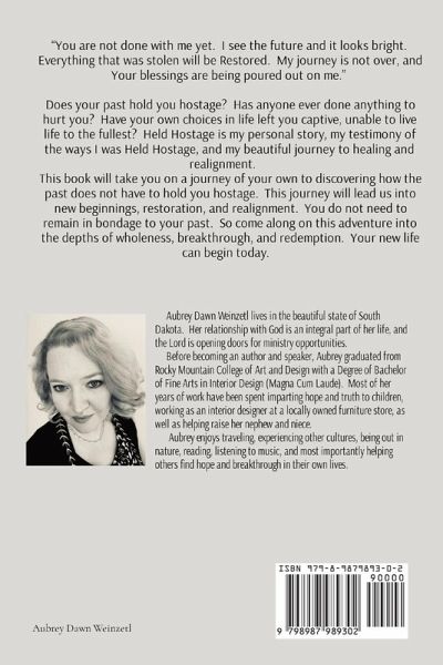 "You are not done with me yet. I see the future and it looks bright. Everything that was stolen will be Restored. My journey is not over, and Your blessings are being poured out on me." Does your past hold you hostage? Has anyone ever done anything to hurt you? Have your own choices in life left you captive, unable to live life to the fullest? Held Hostage is my personal story, my testimony of the ways I was Held Hostage, and my beautiful journey to healing and realignment. This book will take you on a journey of your own to discovering how the past does not have to hold you hostage. This journey will lead us into new beginnings, restoration, and realignment. You do not need to remain in bondage to your past. So come along on this adventure into the depths of wholeness, breakthrough, and redemption. Your new life can begin today.