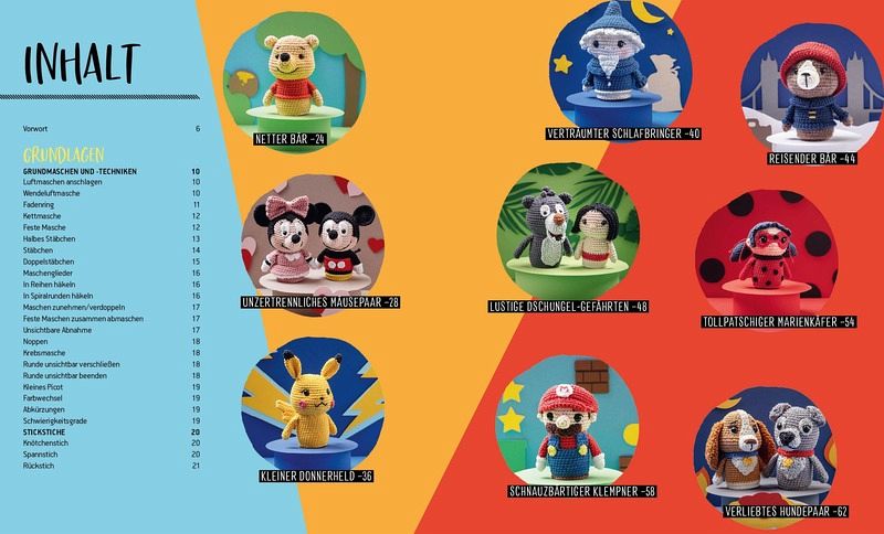 Nach einer Einführung in benötigte Materialien und verschiedene Häkeltechniken inklusive Illustrationen folgen schon die einzelnen Anleitungen für die Helden-Amigurumis. Materialangaben, Figurengröße und Schwierigkeitsgrade sind den Anleitungen beigefügt, so kann nichts schiefgehen.