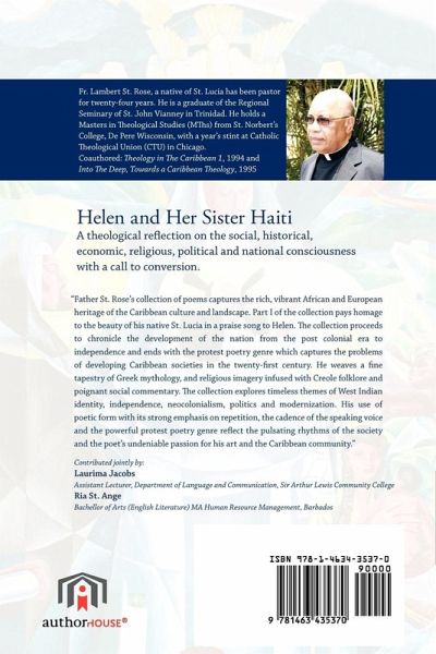 Helen and Her Sister Haiti A theological re ection on the social, historical, economic, religious, political and national consciousness with a call to conversion. "Father St. Rose's collection of poems captures the rich, vibrant African and European heritage of the Caribbean culture and landscape. Part I of the collection pays homage to the beauty of his native St. Lucia in a praise song to Helen. e collection proceeds to chronicle the development of the nation from the post colonial era to independence and ends with the protest poetry genre which captures the problems of developing Caribbean societies in the twenty- rst century. He weaves a ne tapestry of Greek mythology, and religious imagery infused with Creole folklore and poignant social commentary. e collection explores timeless themes of West Indian identity, independence, neocolonialism, politics and modernization. His use of poetic form with its strong emphasis on repetition, the cadence of the speaking voice and the powerful protest poetry genre re ect the pulsating rhythms of the society and the poet's undeniable passion for his art and the Caribbean community." Contributed jointly by: Laurima Jacobs Assistant Lecturer, Department of Language and Communication, Sir Arthur Lewis Community College Ria St. Ange Bachellor of Arts (English Literature) MA Human Resource Management, Barbados