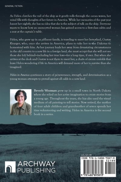 As Helen clutches the rail of the ship as it gently rolls through the ocean waves, her mind fills with thoughts of her future in America. While her memories of the past year haunt her nightly, she has no idea that she is the subject of talk on the ship. Everyone wants to know how an unescorted woman has gained access to a first-class cabin and a seat at the captain's table. Helen, who grew up in an affluent family, is traveling to meet her betrothed, Gustav Krueger, who, once she arrives in America, plans to take her to the Dakotas to homestead with him. As her journey leads her away from devastating circumstances in the old country to a new life in a foreign land, she must accept that she will not see those she left behind-including her true love-for a long time, if ever. But when she arrives at the dock and Gustav is not there to meet her, a chain of events unfolds that leave Helen wondering if life in America will demand more of her to survive than she imagined. Helen in America continues a story of perseverance, strength, and determination as a young woman attempts to prevail against all odds in a new land.