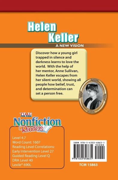 In this inspiring biography, readers will learn about the incredible journey of Helen Keller. Using informational text and expressive images and photos, readers will discover the undeniable determination that Keller had as a young deaf and blind girl and how her teacher, Anne Sullivan, helped her to read, write, speak, and graduate from college. With a timeline, a bibliography, and a glossary of terms, children are given the tools they need to expand their knowledge about this fascinating and inspiring woman.