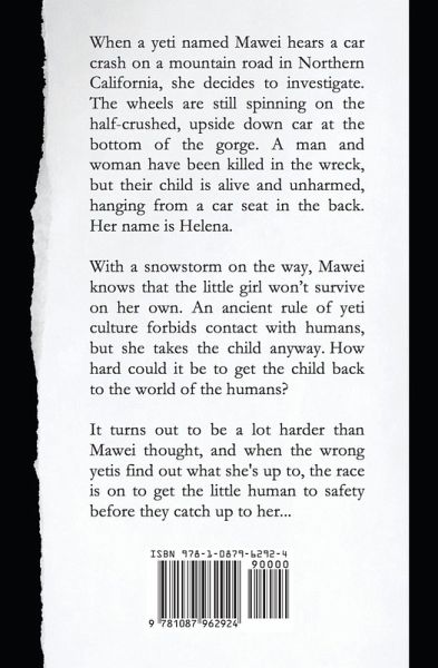 When a yeti named Mawei hears a car crash on a mountain road in Northern California, she decides to investigate. The wheels are still spinning on the half-crushed, upside down car at the bottom of the gorge. A man and woman have been killed in the wreck, but their child is alive and unharmed, hanging from a car seat in the back. Her name is Helena. With a snowstorm on the way, Mawei knows that the little girl won't survive on her own. An ancient rule of yeti culture forbids contact with humans, but she takes the child anyway. How hard could it be to get the child back to the world of the humans? It turns out to be a lot harder than Mawei thought, and when the wrong yetis find out what she's up to, the race is on to get the little human to safety before they catch up to her...