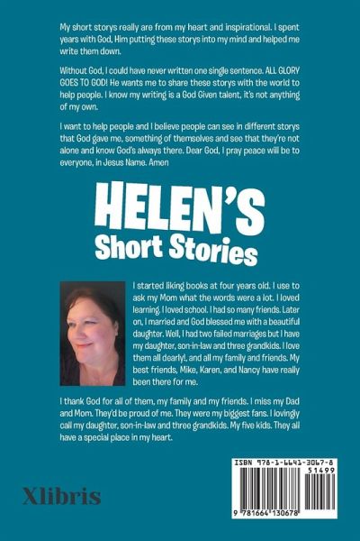 My short storys really are from my heart and inspirational. I spent years with God, Him putting these storys into my mind and helped me write them down. Without God, I could have never written one single sentence. ALL GLORY GOES TO GOD! He wants me to share these storys with the world to help people. I know my writing is a God Given talent, it's not anything of my own. I want to help people and I believe people can see in different storys that God gave me, something of themselves and see that they're not alone and know God's always there. Dear God, I pray peace will be to everyone, in Jesus Name. Amen