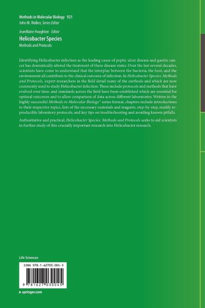 Identifying Helicobacter infection as the leading cause of peptic ulcer disease and gastric cancer has dramatically altered the treatment of these disease states. Over the last several decades, scientists have come to understand that the interplay between the bacteria, the host, and the environment all contribute to the clinical outcome of infection. In Helicobacter Species: Methods and Protocols, expert researchers in the field detail many of the methods and which are now commonly used to study Helicobacter infection. These include protocols and methods that have evolved over time, and standards across the field have been established which are essential for optimal outcomes and to allow comparison of data across different laboratories. Written in the highly successful Methods in Molecular Biology(TM) series format, chapters include introductions to their respective topics, lists of the necessary materials and reagents, step-by-step, readily reproducible laboratory protocols, and key tips on troubleshooting and avoiding known pitfalls.