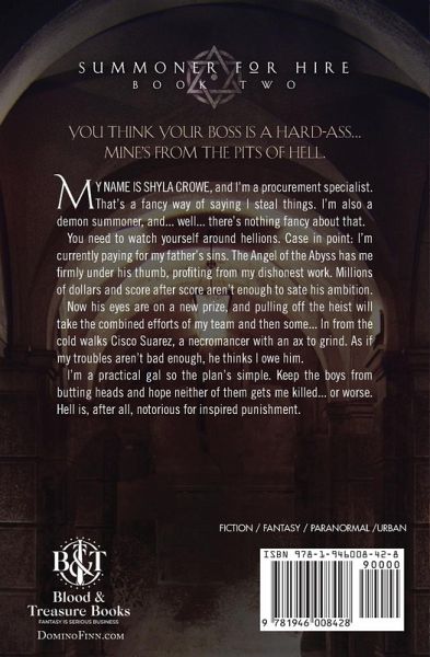 You think your boss is a hard-ass... Mine's from the pits of Hell. My name's Shyla Crowe and I'm a procurement specialist. That's a fancy way of saying I steal things. I'm also a demon summoner, and... well... there's nothing fancy about that. You need to watch yourself around hellions. Case in point: I'm currently paying for my father's sins. The Angel of the Abyss has me firmly under his thumb, profiting from my dishonest work. Millions of dollars and score after score aren't enough to sate his ambition. Now his eyes are on a new prize, and pulling off the heist will take the combined efforts of my team and then some... In from the cold walks Cisco Suarez, a necromancer with an ax to grind. As if my troubles aren't bad enough, he thinks I owe him. I'm a practical gal so the plan's simple. Keep the boys from butting heads and hope neither of them gets me killed... or worse. Hell is, after all, notorious for inspired punishment.