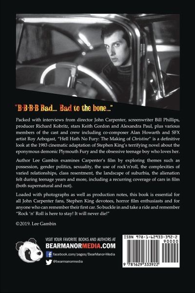 "B-B-B-B Bad… Bad to the bone…" Packed with interviews from director John Carpenter, screenwriter Bill Phillips, producer Richard Kobritz, stars Keith Gordon and Alexandra Paul, plus various members of the cast and crew including co-composer Alan Howarth and SFX artist Roy Arbogast, "Hell Hath No Fury: The Making of Christine" is a definitive look at the 1983 cinematic adaptation of Stephen King’s terrifying novel about the eponymous demonic Plymouth Fury and the obsessive teenage boy who loves her. Author Lee Gambin examines Carpenter’s film by exploring themes such as possession, gender politics, sexuality, the use of rock’n’roll, the complexities of varied relationships, class resentment, the landscape of suburbia, the alienation felt during teenage years and more, including a recurring coverage of cars in film (both supernatural and not). Loaded with photographs as well as production notes, this book is essential for all John Carpenter fans, Stephen King devotees, horror film enthusiasts and for anyone who can remember their first car. So buckle in and take a ride and remember "Rock’n’Roll is here to stay! It will never die!"