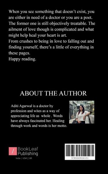 When you see something that doesn't exist, you are either in need of a doctor or you are a poet. The former one is still objectively treatable. The ailment of love though is complicated and what might help heal your heart is art. From crushes to being in love to falling out and finding yourself, there's a little of everything in these pages. Happy reading.