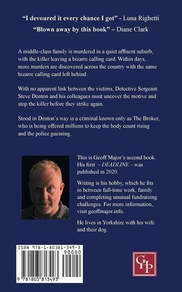 They changed her life forever. Did they really think they could get away with it? Evie Perry was a high-class escort whose way of life was abruptly and cruelly shattered by two drunken men. Stella Kendrick's husband committed suicide and left her with a legal battle and a debt of £6m, but he leaves her a message with the names of three men on it. Daniella Maddox is a world-class barrister, assigned to an indefensible case for a corrupt client, but one she must win to save her own life. Unbeknownst to them, fate has woven their lives into a twisted web. Detective Sergeant Alan Armitage is mystified when he attends the scene of a triple murder, but he is very quickly joined in his hunt for the killer by Detective Sergeant Steve Denton from The Met, and Detective Sergeant Bob Williams from North Yorkshire CID. Along with Detective Constable Rachael Jones, they have to uncover who the murderer is and why they are killing people across the country. Their task is made even more difficult because a criminal known to most simply as The Broker gets closer to banking millions every time his team commits another murder.