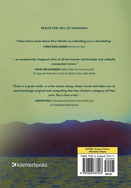 Imagine the Empire State Building removed from New York City. Imagine that building reconstructed brick-by-brick on your father's private island-the trappings of the past stolen from the public to indulge unfettered hypocrisy. This is James's defeated and ravaged landscape when his father, Fep Anglish, successfully monopolizes all forms of industry into one perfect company called U atop the collapse of the old world. Ownership becomes a thing of the past. Now, anyone can have anything-temporarily. Is this hosanna? Maybe on paper. But to James, the "rent and move on" lifestyle is a total hell. And in this hell, his impossible dream of becoming something fuels his transience and passivity. This is reality until one strange day, when the whole thing comes tumbling down on itself and James finally gets the opportunity to break away. In a U space shuttle, he travels to the ultimate unknown in boundless space. Freedom, finally? The real hosanna?