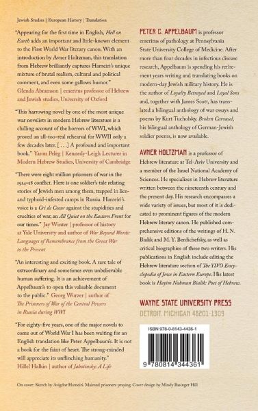 Hell on Earth is the second book written by Avigdor Hameiri (born Feuerstein; 1890-1970) about his experiences as a Russian prisoner of war during the second half of World War I. Translator Peter C. Appelbaum first became interested in Hameiri's story after learning that one quarter of the Austro-Hungarian army was captured and imprisoned, and that the horrific events that took place at this time throughout Russia and central Asia are rarely discussed in scholarly texts. Available for the first time to an English-speaking audience, this reality-driven novel is comparable to classics like All Quiet on the Western Front and The Gulag Archipelago. The text is deeply tragic, while allowing some humor to shine through in the darkest hour. The reader is introduced to a procession of complex characters with whom Hamieri comes into contact during his imprisonment. The narrator watches his friends die one by one until he is released in 1917 with the help of Russian Zionist colleagues. He then immigrates to Israel in 1921. Hameiri's perspective on the things surrounding him-the Austro-Hungarian Army, the Russian people and countryside, the geography of Siberia, the nascent Zionist movement, the Russian Revolution and its immediate aftermath-offers a distinct personal view of a moment in time that is often overshadowed by the horrors of the Holocaust. In his preface, Appelbaum argues that World War I was the original sin of the twentieth century-without it, the unthinkable acts of World War II would not have come to fruition. With an introduction by Avner Holtzman, Hell on Earth is a fascinating, albeit gruesome, account of life in prison camps at the end of the First World War. Fans of historical fiction and war memoirs will appreciate the historic value in this piece of literature.
