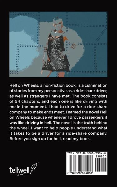 Hell on Wheels, a non-fiction book, is a culmination of stories from my perspective as a ride-share driver, as well as strangers I have met. The book consists of 54 chapters, and each one is like driving with me in the moment. I had to drive for a ride-share company to make ends meet. I named the novel Hell on Wheels because whenever I drove passengers it was like driving in hell. The novel is the truth behind the wheel. I want to help people understand what it takes to be a driver for a ride-share company. Before you sign in for hell, read my book.