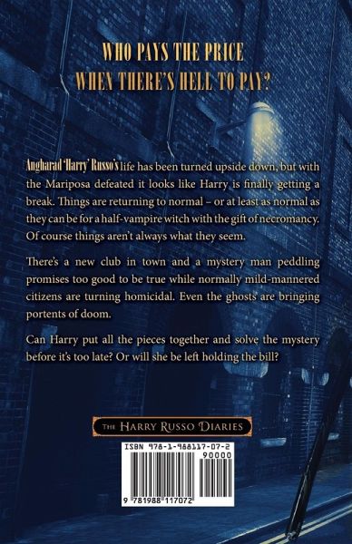 Who pays the price when there's hell to pay? Angharad 'Harry' Russo's life has been turned upside down, but with the Mariposa defeated it looks like Harry is finally getting a break. Things are returning to normal - or at least as normal as they can be for a half-vampire witch with the gift of necromancy. Of course things aren't always what they seem. There's a new club in town and a mystery man peddling promises too good to be true while normally mild-mannered citizens are turning homicidal. Even the ghosts are bringing portents of doom. Can Harry put all the pieces together and solve the mystery before it's too late? Or will she be left holding the bill? While this is a standalone adventure, it continues the adventures of Harry and her friends from the previous three books. Your experience will be greatly enhanced by starting the series from the beginning: Dead and Kicking, vol. 1 Tooth and Claw, vol. 2 Deadlocked, vol. 3